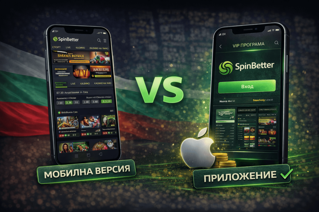 Мобилният сайт на SpinBetter няма съществени разлики с версията на цял екран или с приложението, поддържа всички видове залози, бонус програми и турнири, така че потребителите не са ограничени по никакъв начин. За да ви бъде удобно да използвате мобилния сайт на SpinBetter, по него работи цял екип от специалисти. И тази работа не свършва, всеки ден усъвършенстваме нашия ресурс, като се грижим Вашият комфорт да остане пълен, а използваемостта и бързината на услугите да са на нивото на последните технологични постижения.